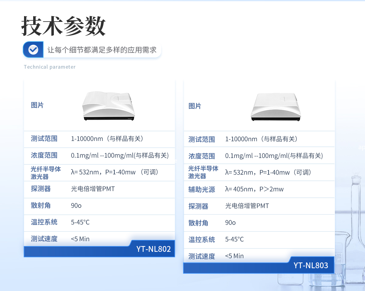 YT-NL802纳米粒度仪是国内首款采用动态光散射原理的纳米粒度仪,其测试原理建立在分散在液体颗粒的布朗运动基础之上,颗粒越小,运动速度越快,颗粒越大,匀速速度越慢。它采用HAMAMATSU高性能光电倍增管和高速数字相关器作为核心器件,通过测试某一角度的散射光的变化并求出自相关函数(即扩散系数),根据Stokes-Einstein方程计算出颗粒粒径及分布,它具有快速,高分辨率,重复及准确等特点,同时具有不破坏性,不干扰纳米颗粒体系原有状态的有点,是纳米颗粒粒度测试的**产品。