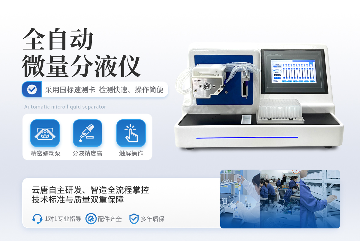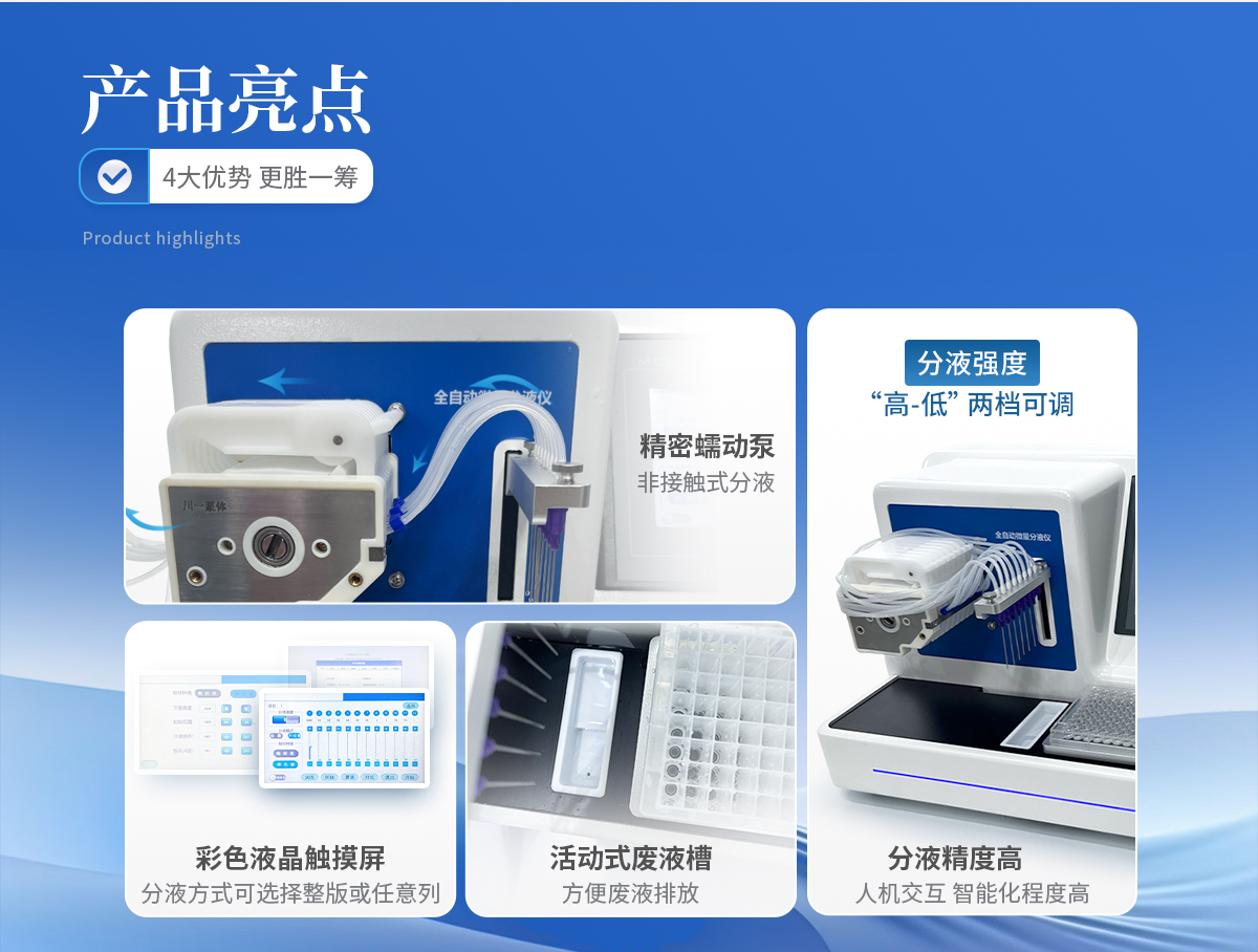 全自动微量分液仪(以下简称“分液仪”)是一种配备高精度蠕动泵的分液设备,能够快速、**、一致的完成自动化分液操作。可广泛应用于疾控筛查、食品检测、动物检疫、生命科学研究等领域。解放实验员双手,在提**率的同时避免错误。