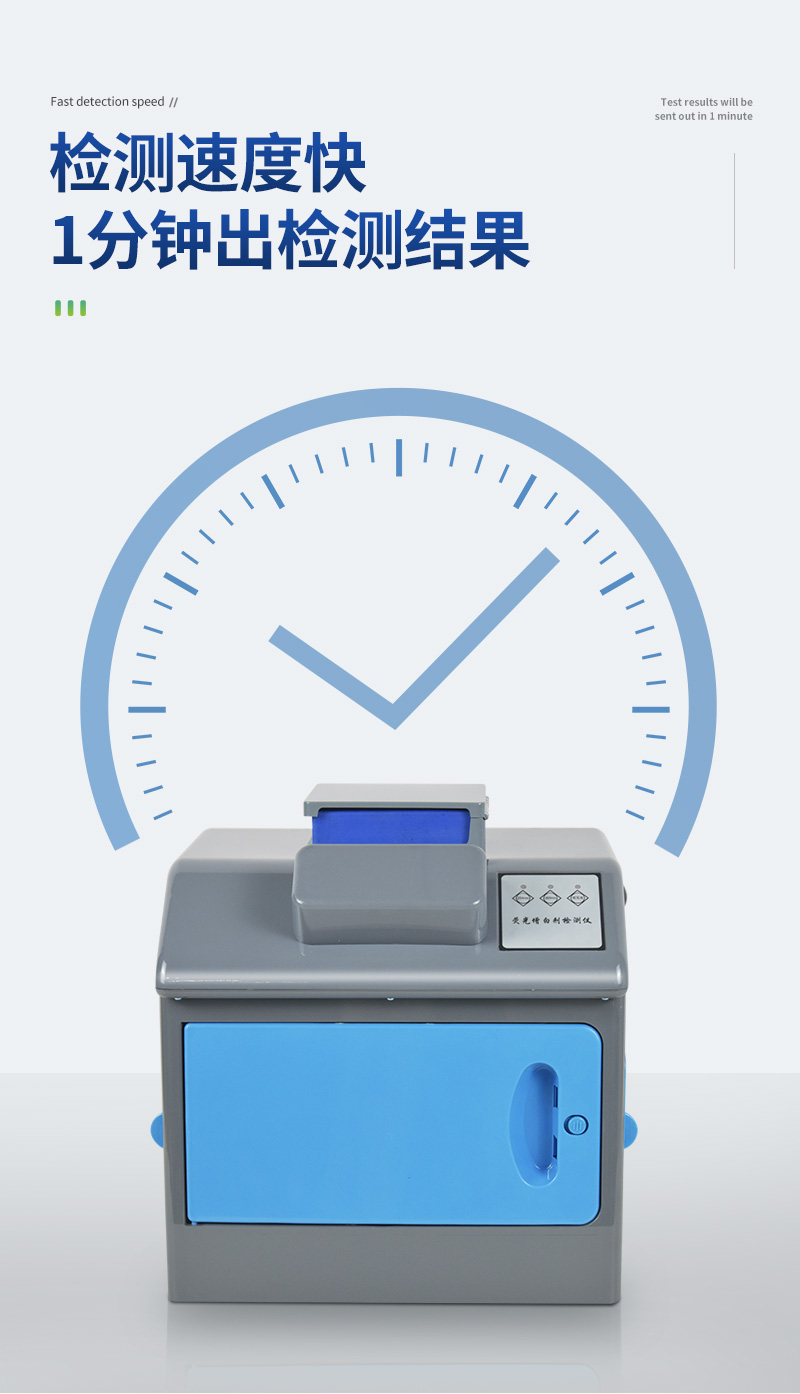 | ★1、采用微电脑进行控制,准确率高 | ★2、操作简单,无需专业人员 | ★3、检测速度快,1分钟出检测结果 | ★4、体积小、重量轻、便于携带 |